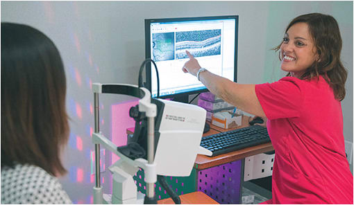 Other technology at InVision Eyecare includes visual field testing, OCT (Heidelberg Engineering), an IOL Master (Carl Zeiss Meditec), and the Orbscan corneal topographer, all of which aid in obtaining specific diagnoses, says Rebecca Kopliner, COA, clinic manager. (See “Ensuring smooth operations,” below.)
