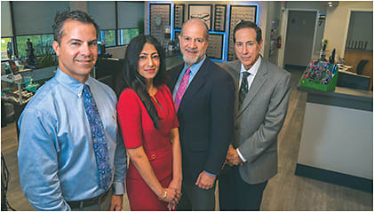 The doctors of InVision Eyecare (from left): Marc von Roemer, MD; Kinnari K. Patel, OD; Edward Hedaya, MD, the founder of InVision Eyecare; and William Greenberg, OD.